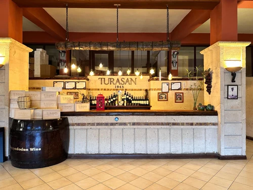Ürgüp merkeze çok az bir mesafe kala sizi Turasan Şarap Fabrikası karşılıyor. Burada şarap tadımı yapmanız mümkün. Biz gittiğimizde mevcutta tadım yaptırdıkları 3 kırmızı 2 beyaz ve 1 rose şarapları vardı. Bu tadım için 150 TL ödedik. Tadım için ayrı bir yere geçip oturuyorsunuz ikram olarak da kraker veriliyor. Peynir tabağı da mevcut ancak isterseniz onu tadımın ödemesini yaparken ayrıca ücret karşılığında talep etmeniz gerekiyor. Turasan üretimi şarapları alabileceğiniz bir yer aynı zamanda burası.