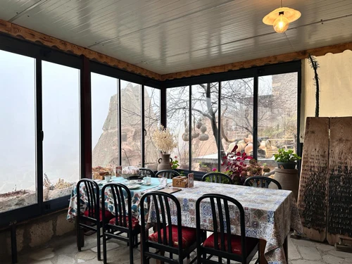 Biz Kapadokya gezimizde 7 kişi olacağımız için AirBnb’den Peri Cave Konak’ı tercih ettik. Bu konak Ortahisar bölgesinde yukarıda bahsettiğim gibi mağara oluşumunda bir yapıya sahip. 8 kişiye kadar konaklama imkanı var. Konağın tam ortasında genişçe bir avlu var. Orada barbekü yapmanız mümkün. Hem konum olarak hem de diğer özellikleri bakımından memnun kaldığımız bir konaktı. Aynı zamanda kendi internet sitesi de var. Buraya tıklayarak inceleyebilirsiniz.