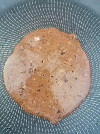Yapışmaz bir tavayı ya da evinizde varsa krep tavasını 1 tatlı kaşığı Hindistan cevizi yağı ile yağlıyoruz ve tavanın altını açıyoruz. Krep hamurunu tavaya koymadan önce tavayı ısıtmanız önemli ancak bu ısıyı iyi ayarlamaya dikkat edin çünkü yapışmaz tavalar yüksek ısılarda sağlığımız için bir tehdit oluşturabiliyor. Isınan tavaya bir çorba kepçesi yardımıyla krep hamurunu döküyoruz. Burada krep büyüklüğünü kendiniz ayarlayabilirsiniz. Ben genelde pankek boyutundan biraz daha büyük yapıyorum krep boyutunu. Bir tarafı pişen ve üzerinde kabarcıklar oluşan krepi çeviriyoruz ve diğer tarafını da pişiriyoruz. Aynı işleme hamur bitene kadar devam ediyoruz.